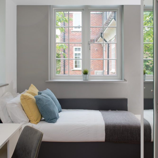 GDL Architecture were appointed as Interior designers for a 289 bed PBSA scheme in Durham. We are proud that our reputation as designers is growing in the student sector and as such we were appointed to work closely with the client to develop a ‘brand’ for their roll out of student accommodation. Due to a change of ownership prior to commencement on site, we then collaborated with the new operators and client to ensure that the scheme could accommodate the new brand. GDL worked with an Architectural practice in Manchester to bring the vision to fruition