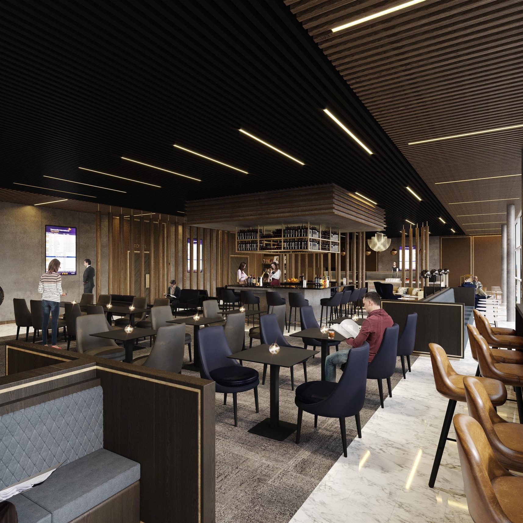 This project for Newcastle International Airport Lounge was unfortunately put on hold due to the impact of COVID 19. the shell was completed in 2023, with the interiors re-designed to become part of Aster & Thyme – A new premium Bar & restaurant which includes a new kitchen and bar, with a range of seating zones for passengers to enjoy eating, relaxing or working before their flights.